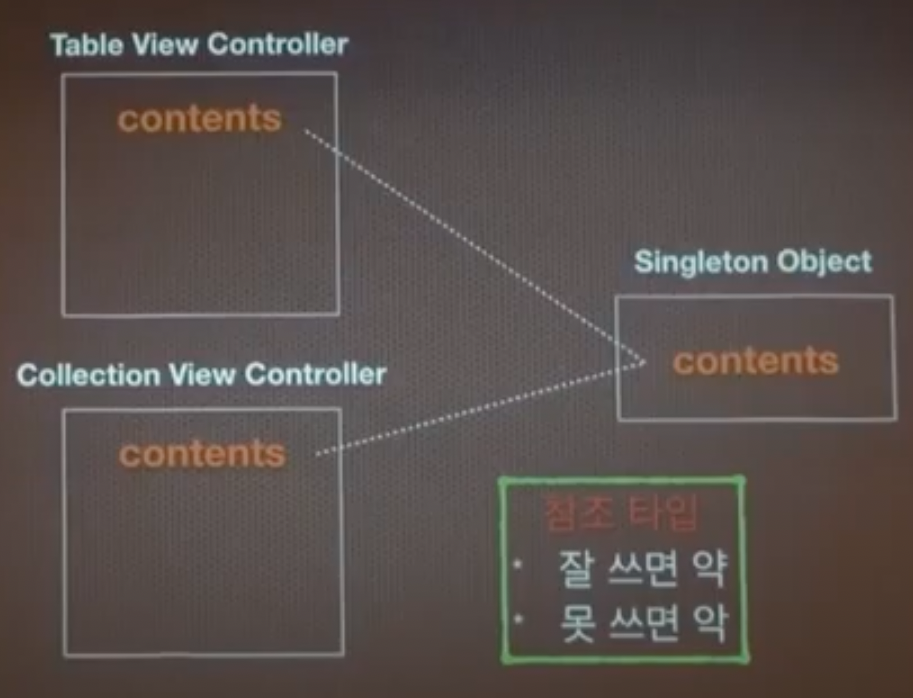 두개의 VC이 같은 데이터를 가질 수 있게 Sington object를 만들어 shared할 수 있게 해줌