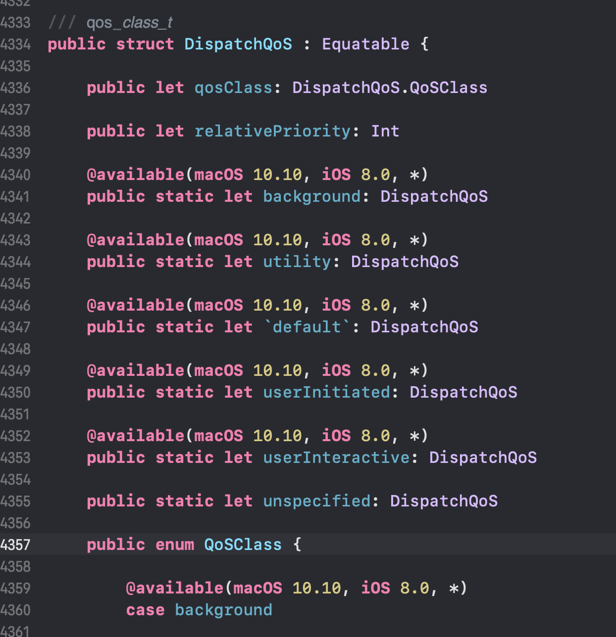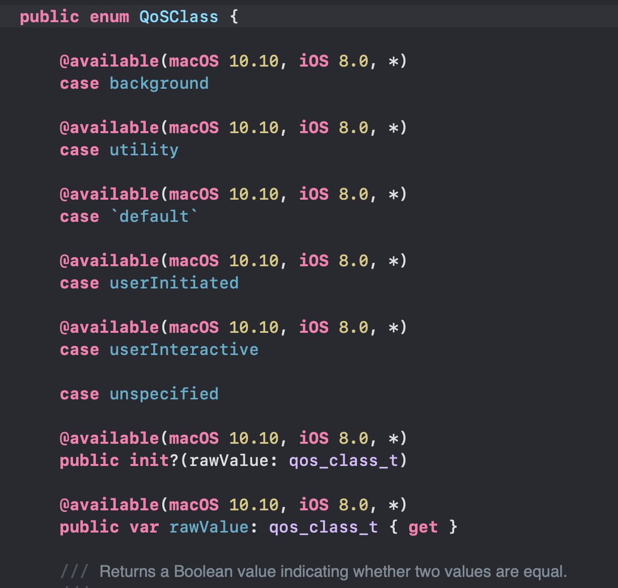 userInteractive, userInitiated, default, utility, background, unspecified 이다.