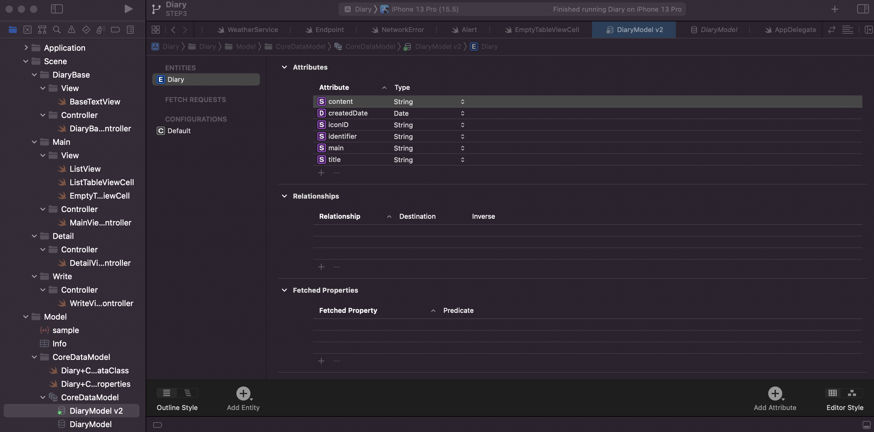 우리가 다이어리 앱을 개발한다고 가정해봅시다. 이 앱에 Core Data에는 id, title, date, content 이 저장되고 있죠.