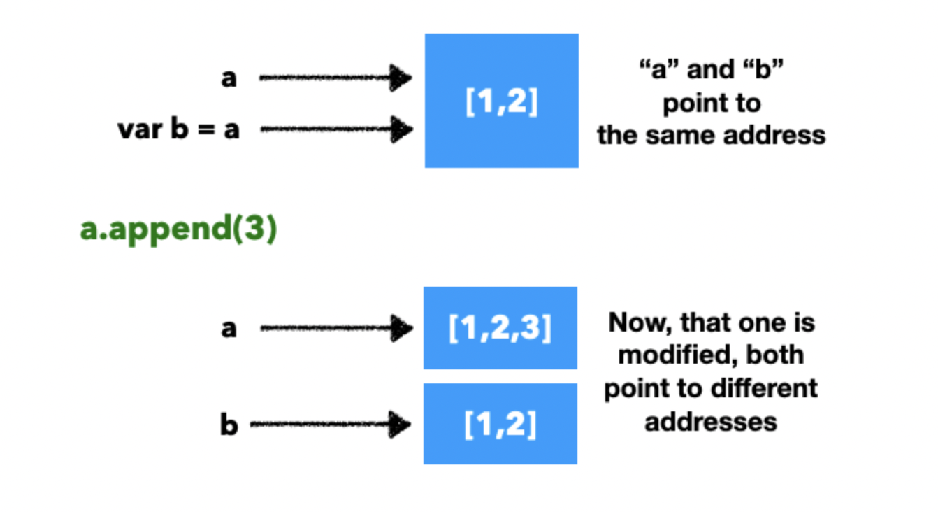 2. pointA가 수정되면 이전 pointA의 전체 복사본이 발생하고 pointB는 이제 다른 주소를 가리킨다.