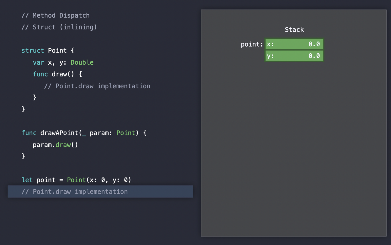 사실 dynamic dispatch는 static dispatch보다 그렇게 많은 비용을 필요로 하지는 않는다. 레퍼런스 카운팅 Heap 할당과 같은 쓰레드 동기 오버헤드가 없다. 하지만 컴파일러는 static dispatch에서는 최적화 작업이 가능하지만 Dynamic dispatch에서는 컴파일러가 추론할 수 없다.