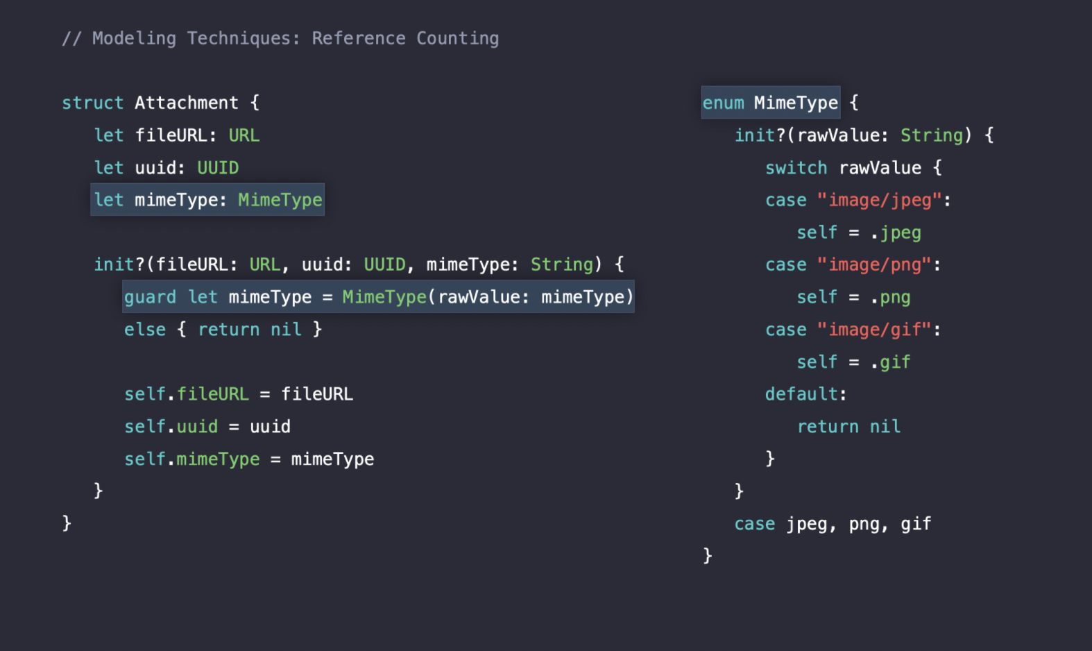 URL은 대체할 수 있는 타입이 없기때문에 그대로 사용해야한다. uuid는 UUID라는 struct타입으로 대체가 가능하고 mimeType은 enum을 만들어 대체가 가능하다.