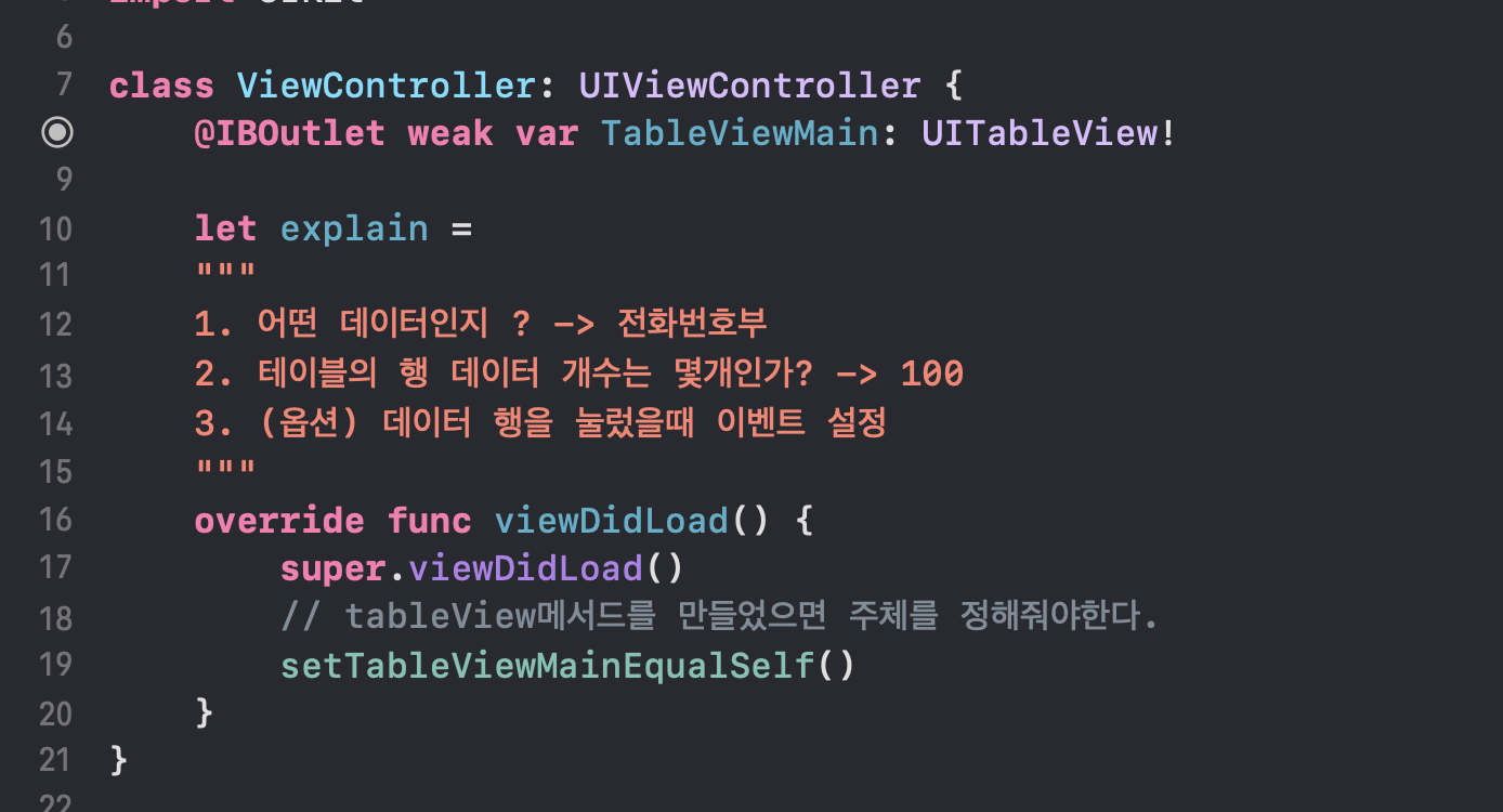 // tableView메서드를 만들었으면 주체를 정해줘야한다.