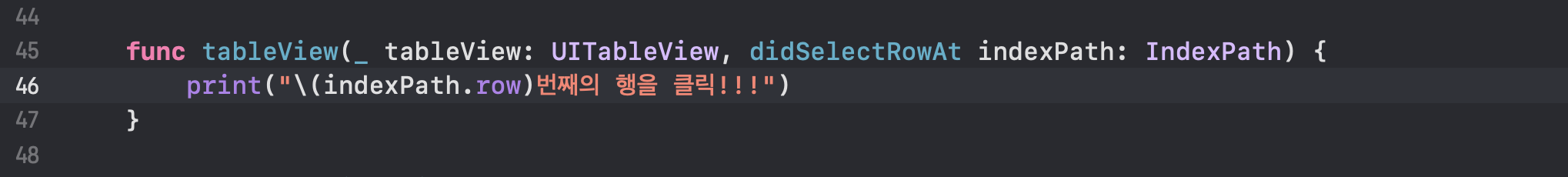 print("\(indexPath.row)번째의 행을 클릭!!!")